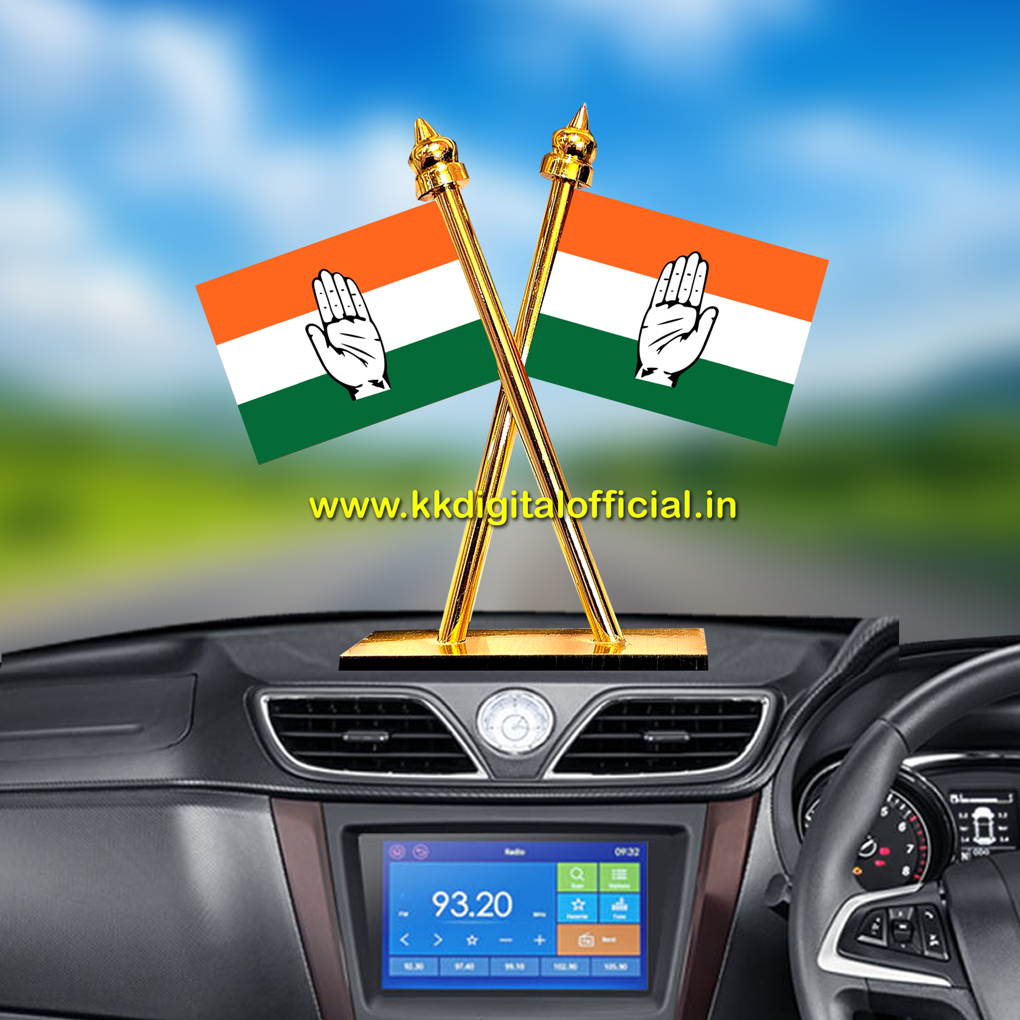 The INC Dashboard Flag is a compact and stylish accessory designed for car dashboards or office tables. It proudly represents support for the Indian National Congress and its ideologies.