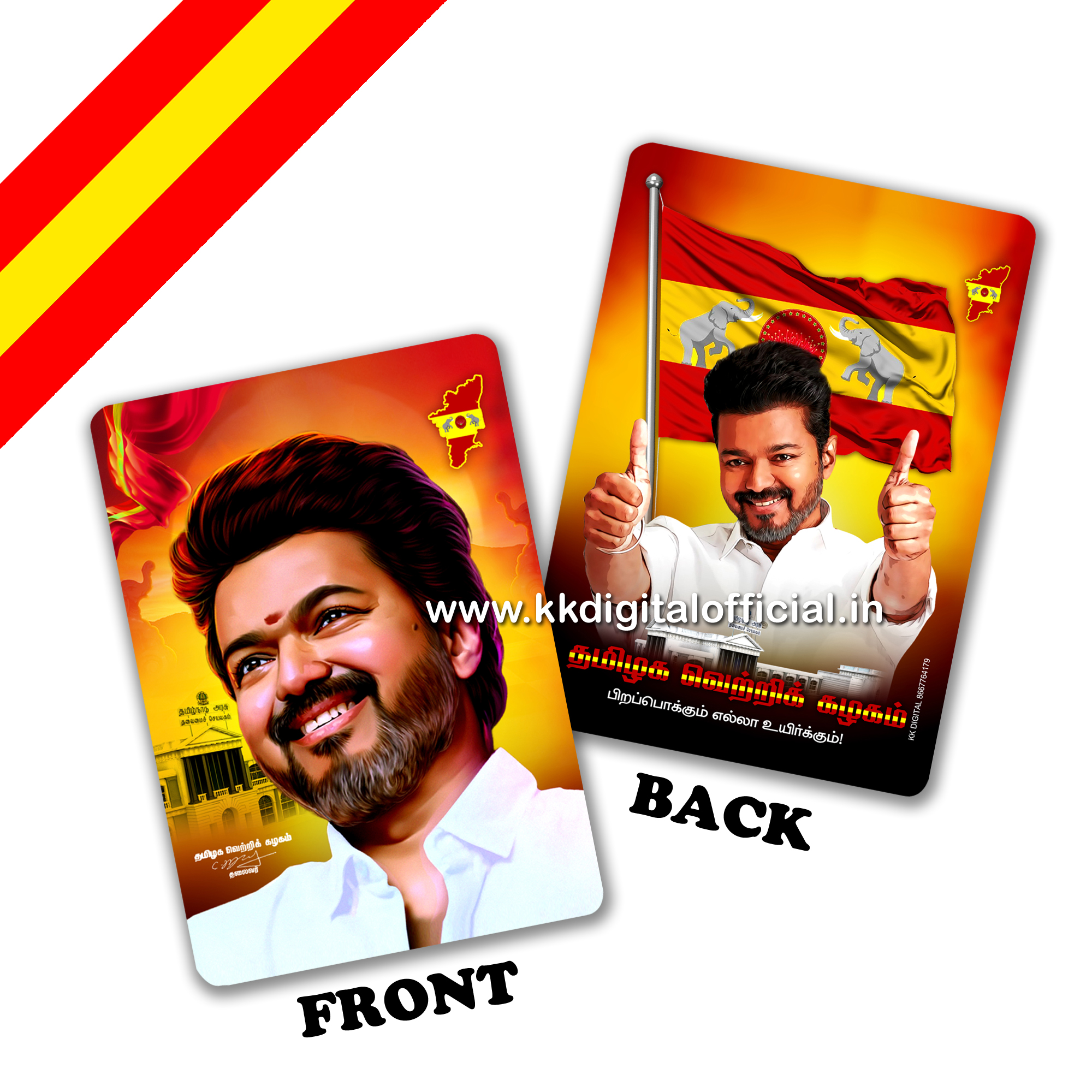 The TVK Pocket Card is a compact, durable, and stylish representation of your affiliation with Tamilaga Vettri Kazhagam (TVK), a dynamic political party led by actor Vijay. This card embodies the spirit of unity and commitment among TVK members across Tamil Nadu and beyond.